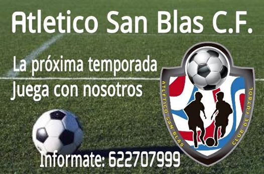 Las pruebas de captación de jugadores y porteros para pertenecer a las diferentes plantillas del Atlético San Blas tendrán lugar los días 16 y 18 de junio en el campo del Polideportivo Municipal de San Blas con el siguiente horario: Fútbol 8: de 17.30 a 19 horas. Fútbol 11: de 19.15 a 21.00 horas.